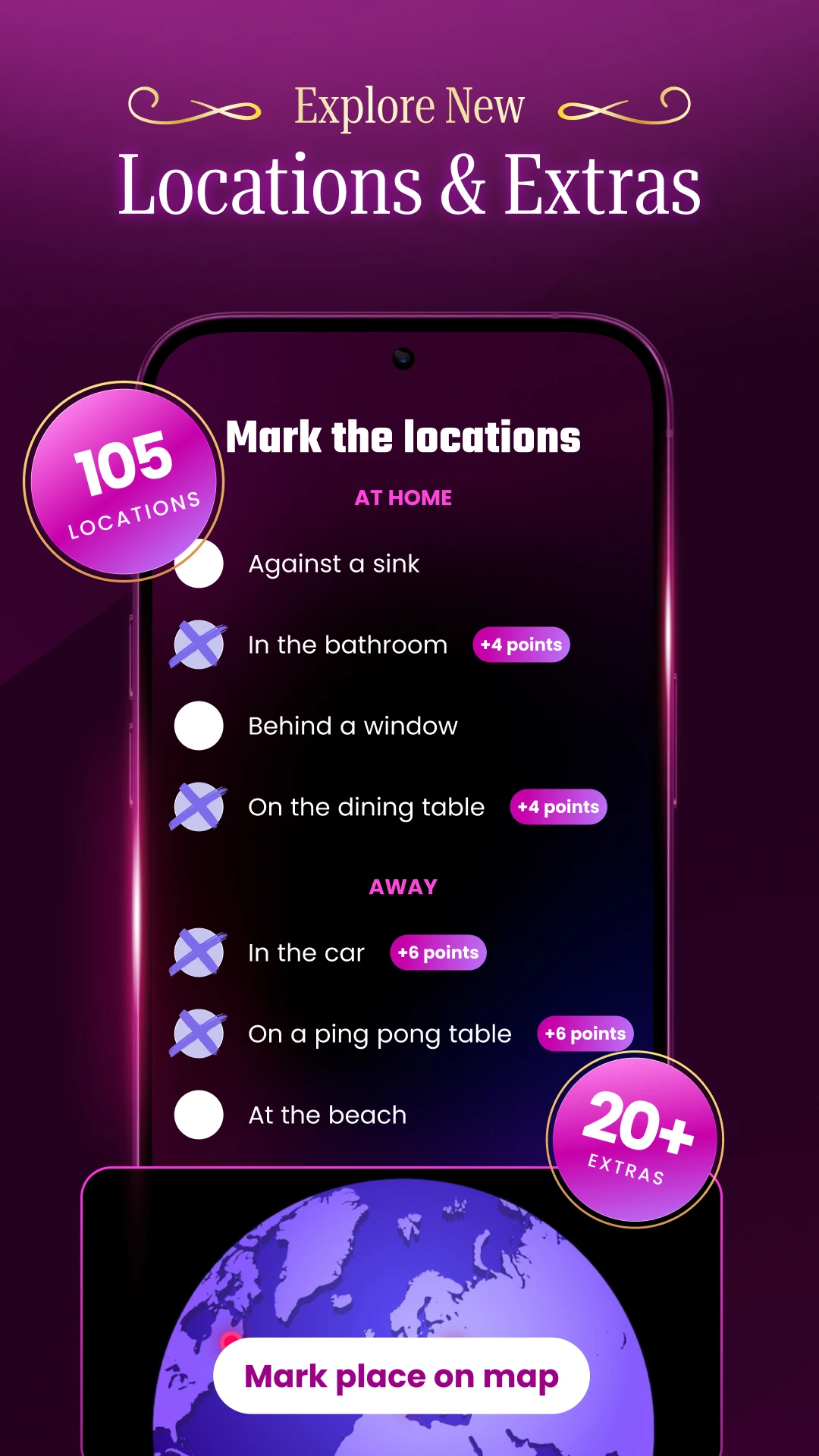 Bring new ideas into your love life and discover together with your partner 1000+ exciting couple challenges in 4 different categories. How many of them can you do?